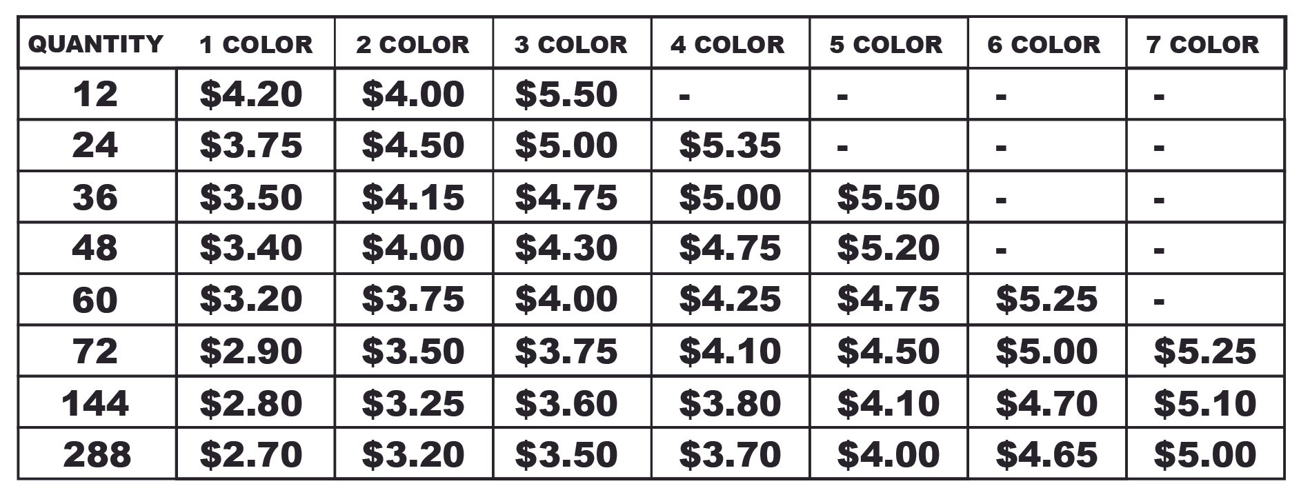 Standard turnaround times for Screen Printing is 10-14 days after Art Approval